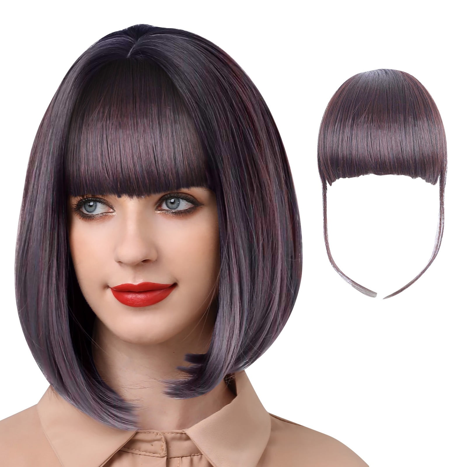 Chaolei Wigs For Black Women Human Hair Wig Female Air Bangs Double Sideburns Hairpiece With Hairpin Fiber Bangs Bangs Fringe With Temples Hairpieces For Women Clip On Air Bangs For Daily Party